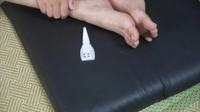 把双脚用502粘起来,挣脱开以后加大剂量再把双手和脚也粘起来