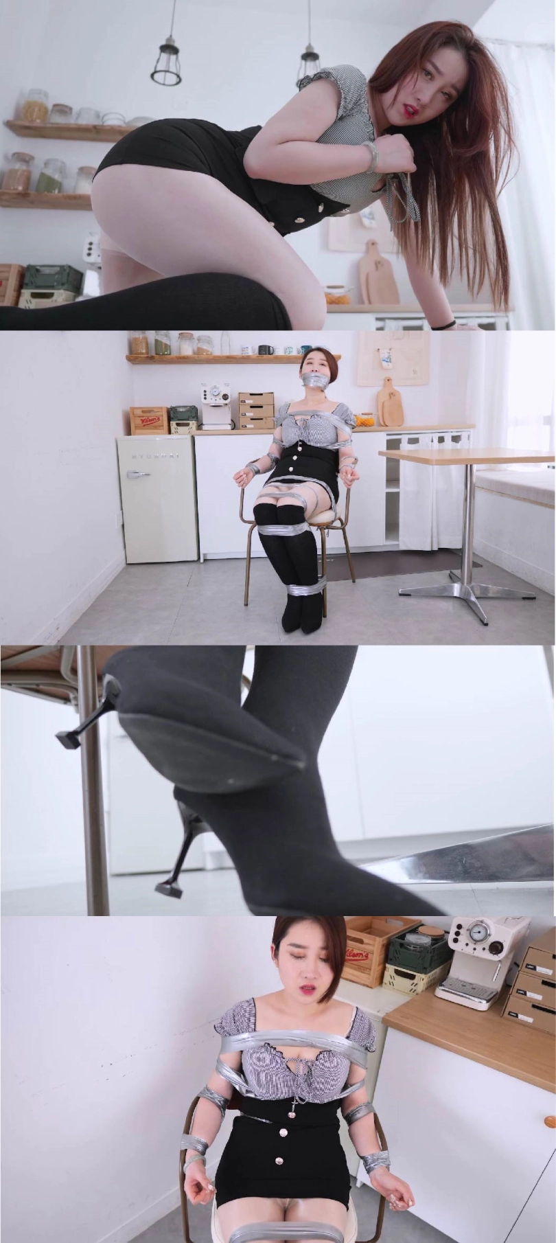 【4K映像】黑色长靴袜靴,超薄肉丝,双倍快乐,锁住酸味,银色胶布