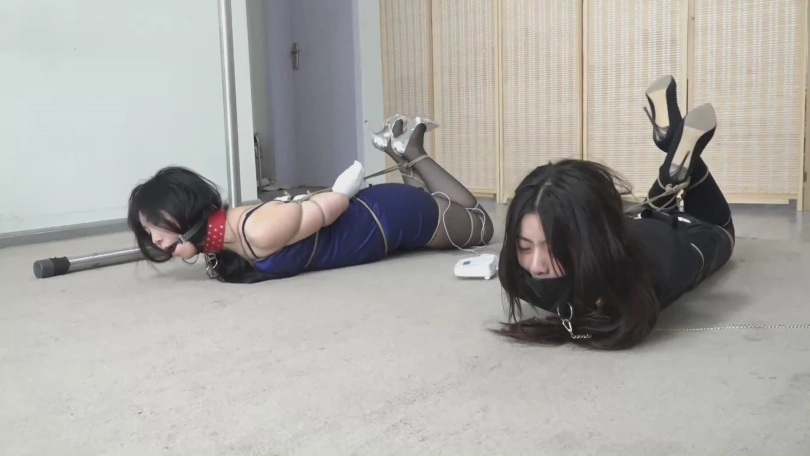 再把她和紫嫣并排绑成驷马!带上电击器和项圈!