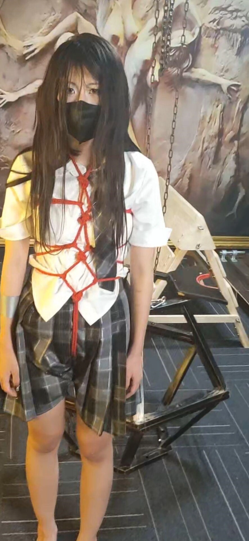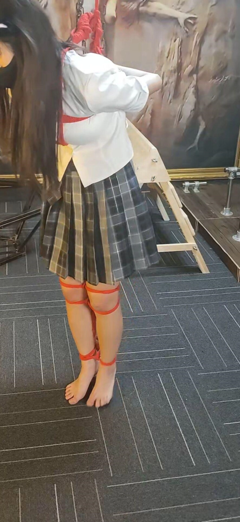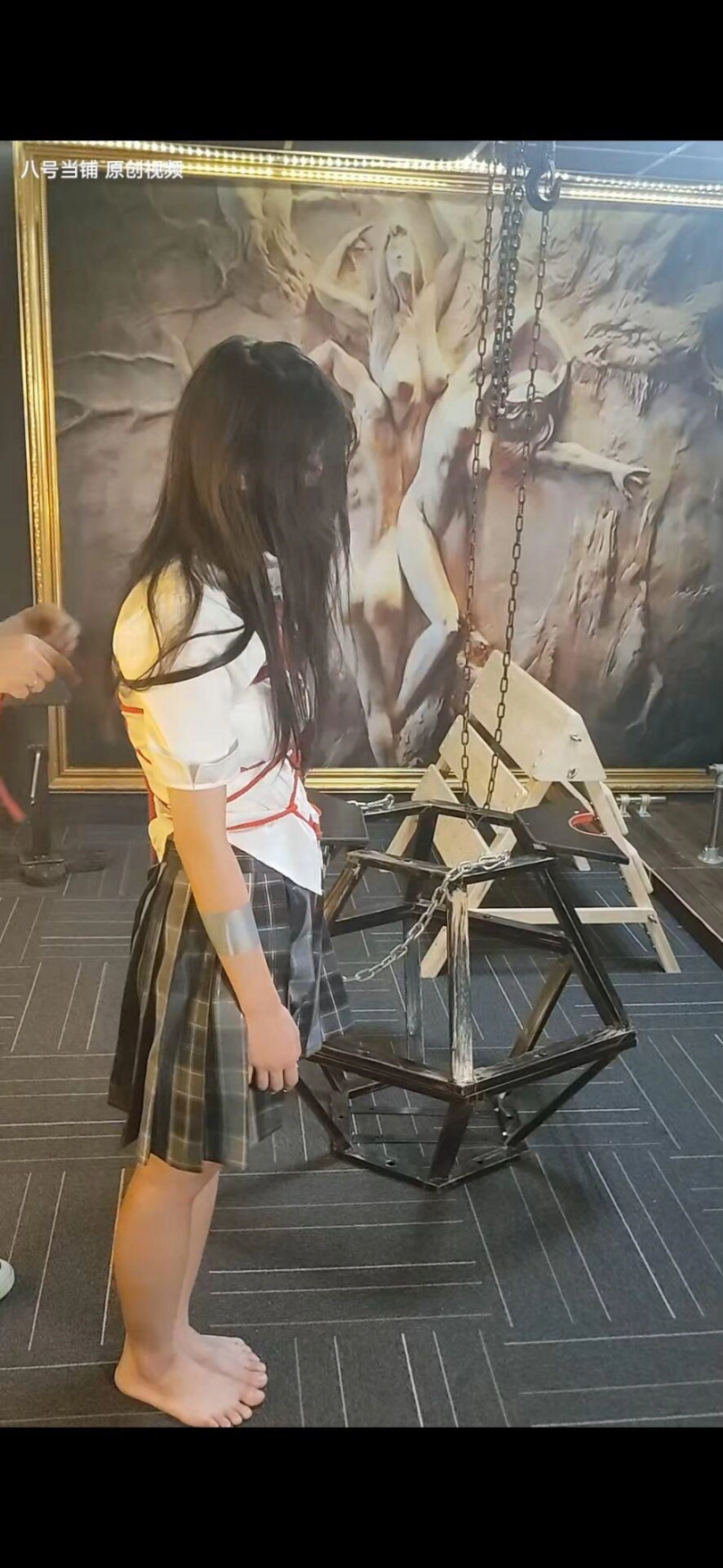 不敢相信涵涵第一次来因为太着急竟然没有洗头发,还是年轻的小女孩,有点慌张。只能由我这个变态叔叔照顾了,第一次绳艺,因为头发的问题一个美少女被我拍的有点惨,可惜了。最后的笼子调教光线有点死亡就没有放上去了。