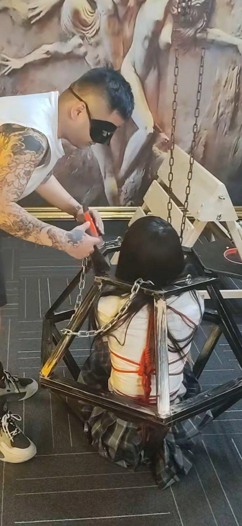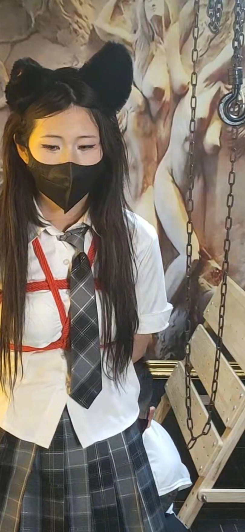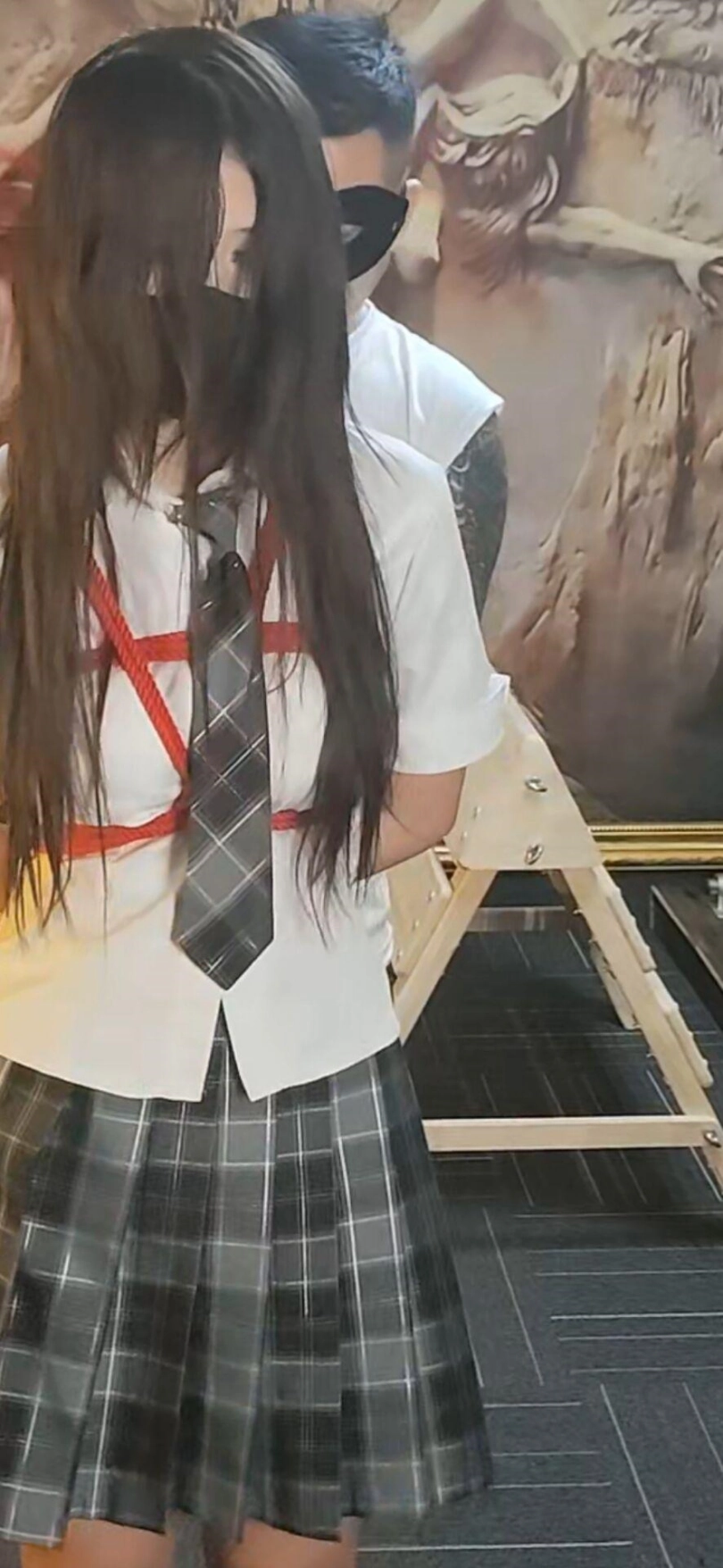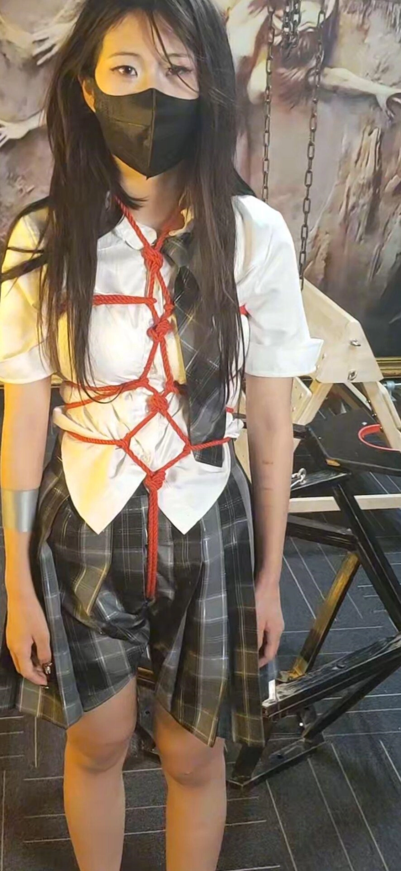 不敢相信涵涵第一次来因为太着急竟然没有洗头发,还是年轻的小女孩,有点慌张。只能由我这个变态叔叔照顾了,第一次绳艺,因为头发的问题一个美少女被我拍的有点惨,可惜了。最后的笼子调教光线有点死亡就没有放上去了。