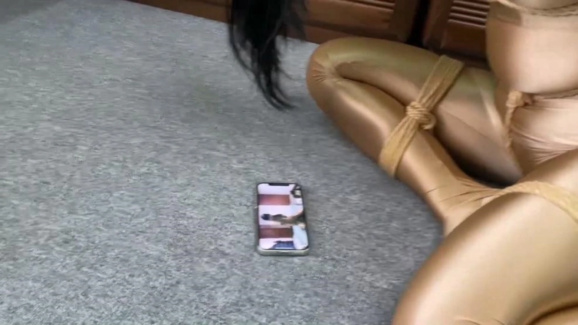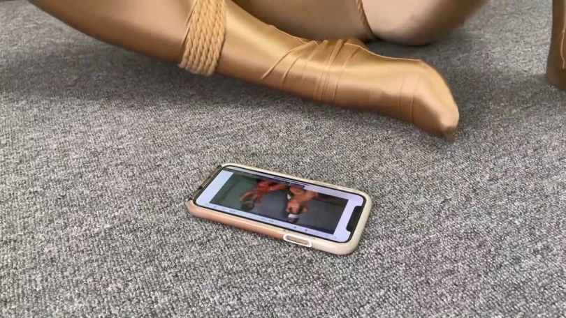她用脚趾点击手机。手机每点一次都播放不同的美女被捆绑的视频。