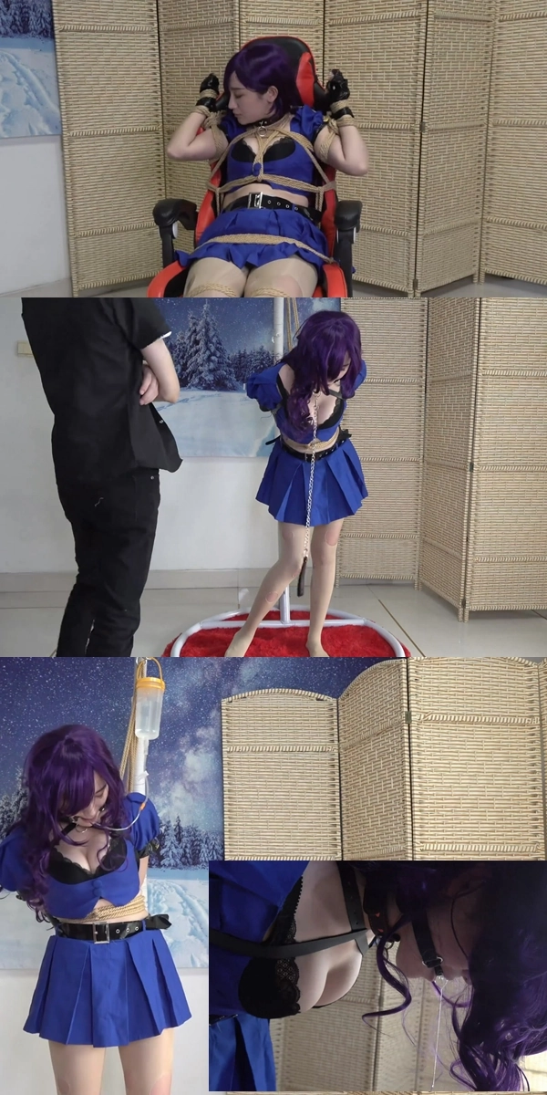 要点:爆乳,长靴丝袜,手铐脚镣加身,绳索吊绑单手套,眼罩口球,口水直流,强迫喝下自己的口水,最后紧缚逃脱