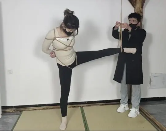 单脚被吊起来身体在空中无法保持平衡,被折磨的.......