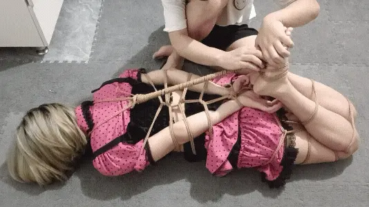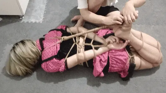 手和脚都被主人捆绑在了一起,绳子勒住小狗细腻白皙的脖颈,白皙的脖颈在绳子的摩擦下,升起了一道道爱的痕迹,脚心被主人拿工具狠狠的惩罚者,小狗的表情十分的痛苦难耐,不断扭动着身躯进着无声地抗议
