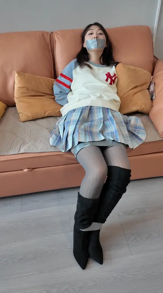 独居姐姐下班回家,却忘记关紧房门,被坏人尾随入室,姐姐今天穿着宽松卫衣,短裙,灰色丝袜,加一双过膝的黑色高跟靴,让坏人起了歹心,把姐姐迷晕后坏人把姐姐捆绑起来,胶带封嘴,姐姐拼命挣扎也只是徒劳,坏人又把姐姐报到楼上,再次紧紧捆绑,用胶带封住眼睛,玩弄调戏姐姐,姐姐能否掏出绝望的处境
