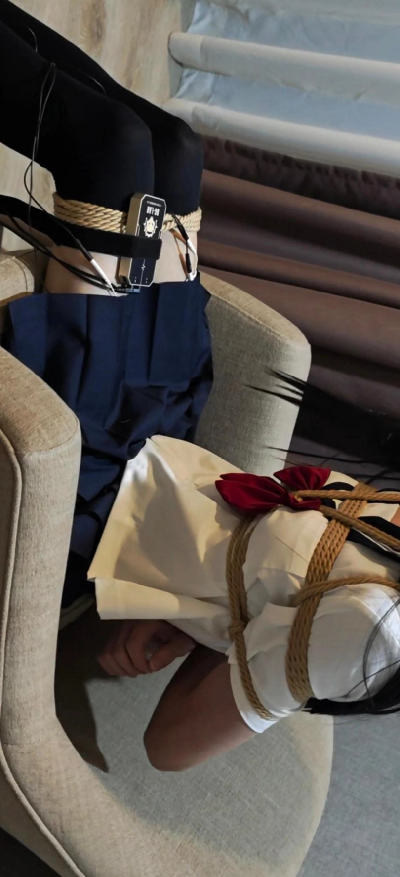 剧情一:换上jk日式缚绑在凳子上贴上郊狼,带上口球蒙眼。无法反抗,只能呜呜呜!