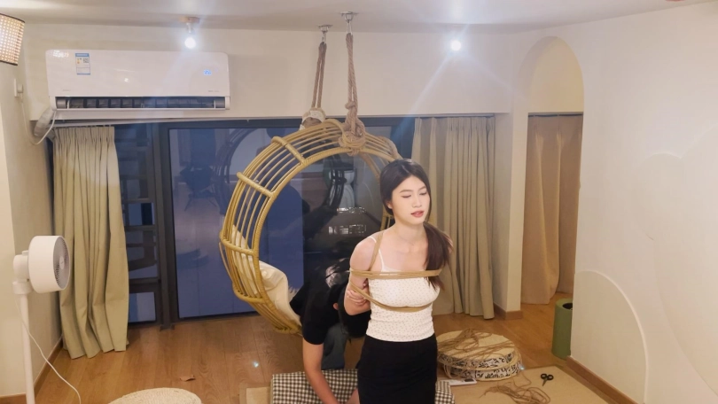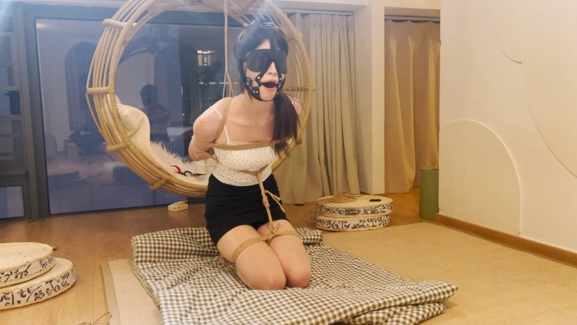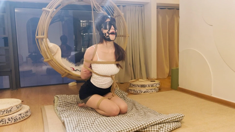 的爱笑的舞蹈生,笑点低一绑上就笑个不停,穿着小吊带超短裙身材还是非常不错的,这次给安排上日式紧缚跪在阁楼上独自放置,给绳子固定住只能跪着直不起身,在堵上嘴蒙上眼限制住感官,最后解开的时候真个人都跪麻了。
