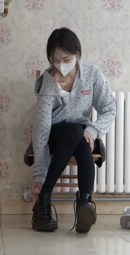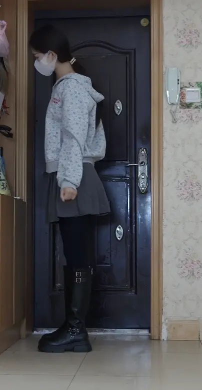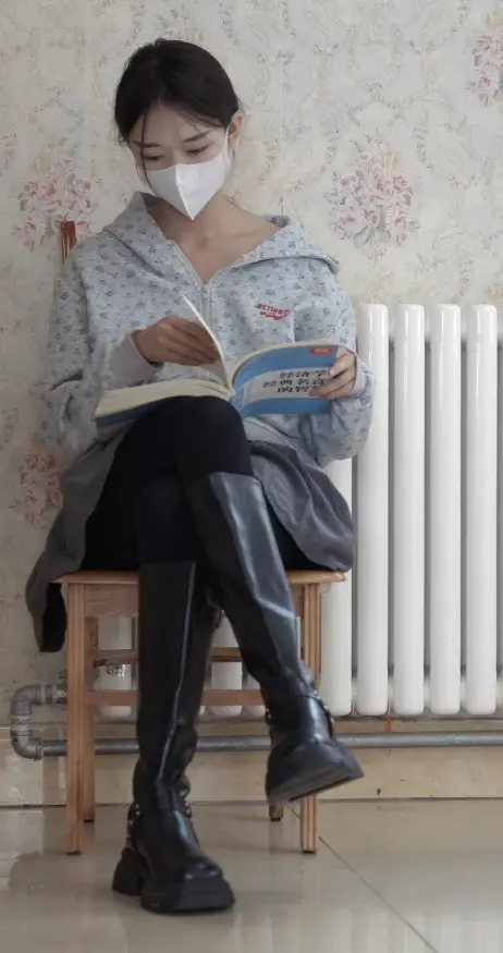 女孩回家之后勤奋学习,累了之后脱靴在床上休息,休息好了之后便换上了运动鞋,还是不舒服,又换马丁靴。