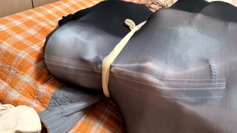 醒来后,她被一股力量驱使着前往卧室。她的室友躺在床上,身边放着许多丝袜,请求柳杨将她全包。柳杨顺从她的请求,将她全包后,抚摸玩弄着她的身体,克制不住自己的情绪。突然她也被神秘的力量丝袜全包起来。二人缠绵了一会后,决定永远全包在一起。于是一个巨大的丝袜睡袋将她们套住,二人背靠背包在一起。一番激情地挣扎后,她们都昏迷了过去。