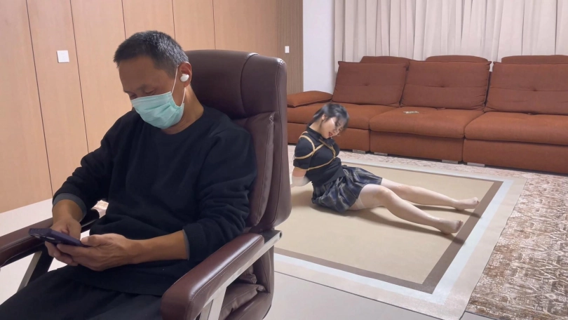 美女听到敲门声,朋友在边上带耳机玩手机没听到,她只能自己开门,她收到一个奇怪的快递,发现地址送错了,但是她还是好奇打开了盒子,发现了绳子,粘液瓶,和绷带。正在她纳闷这些是什么东西的时候,绳子和绷带突然将她的上半身捆绑了,她立马想向朋友求救,但粘液自己飞起将她的双层白丝美腿浇满了粘液,导致她爬不起来。他不停哀求但朋友带着耳机完全听不到,最后粘液把她的嘴巴也粘死了。