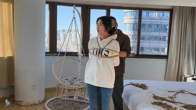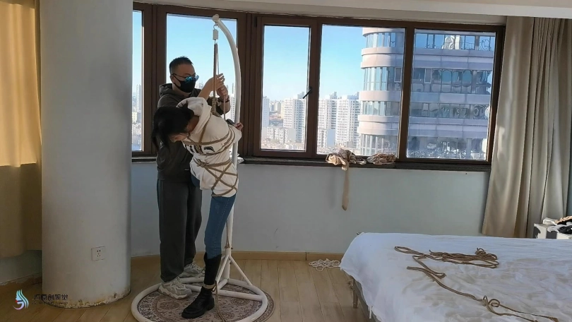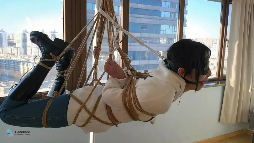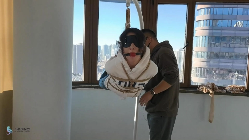 【JS】【欣妍】牛仔裤长靴悬吊捆绑口球堵嘴口水直流蒙眼棒棒刺激