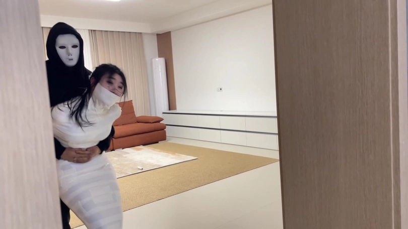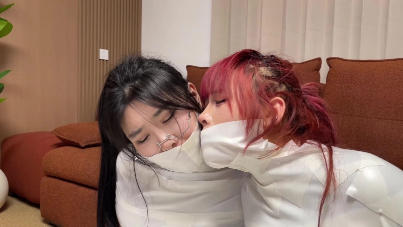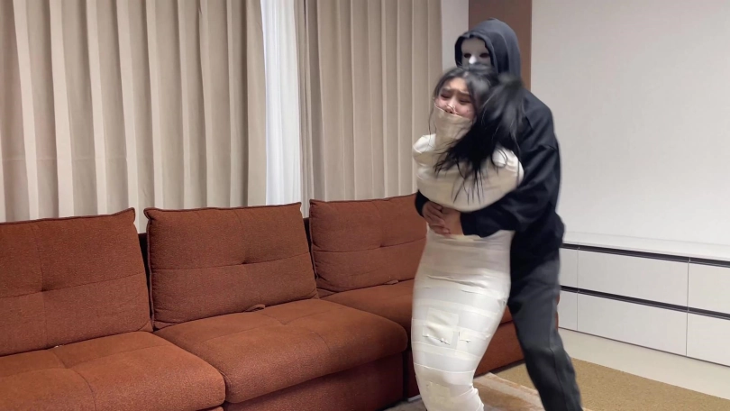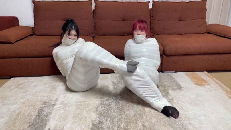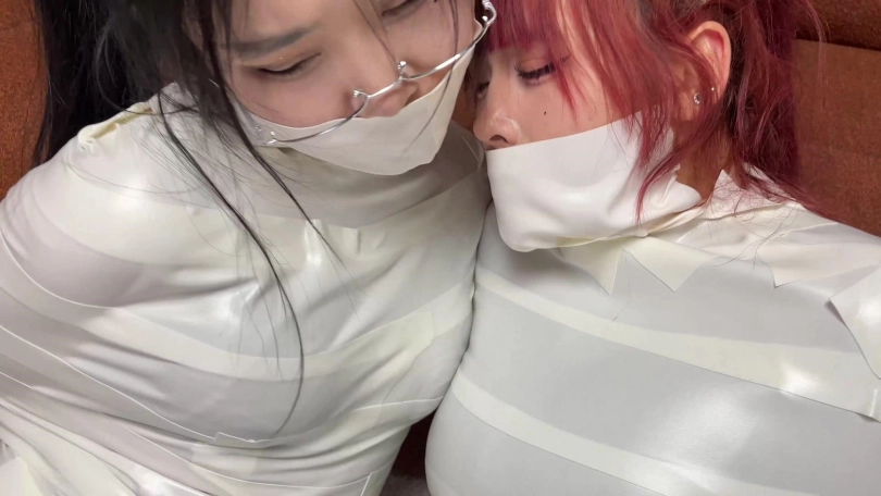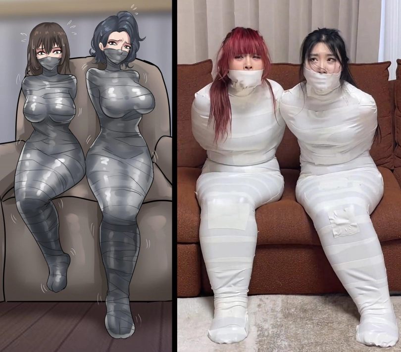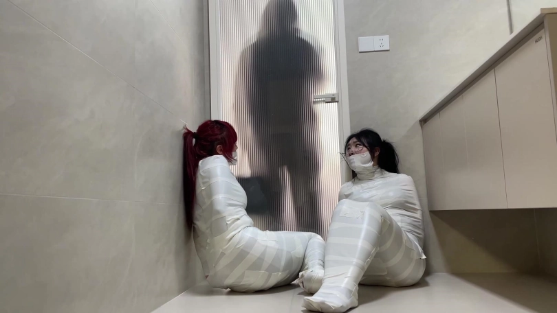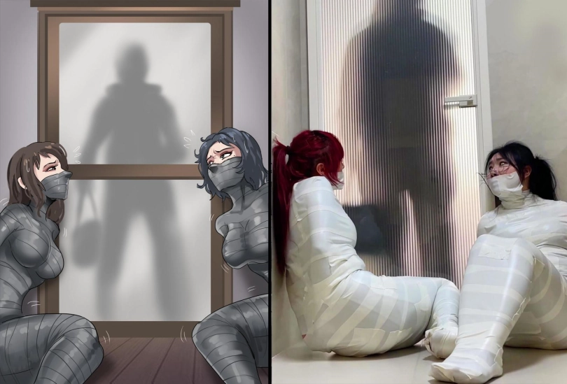 【云雀】《被入室抢劫的美丽母女 下》超人气漫画完美复刻 双人木乃伊捆绑蠕动 求救只有一墙之隔~