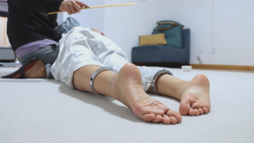 店小二抓起女侠的一只脚,说道:本不想羞辱于你,可你却如此嘴硬,那便只好略施惩戒,让汐雪女侠体会一下江湖险恶了!
