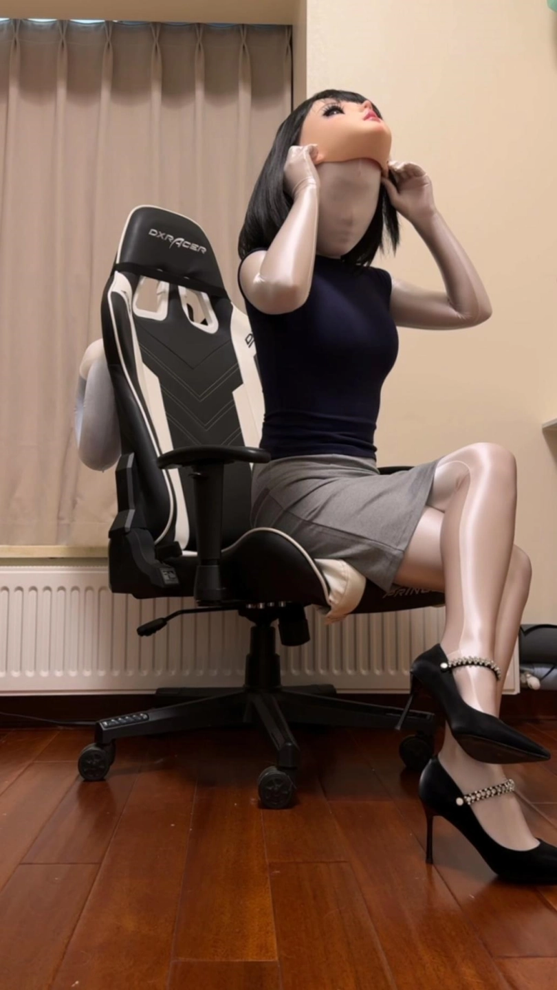 小姐姐变身OL女郎,戴上了头壳,很意外的是居然是穿上了白色的全包紧身衣,很有日常范