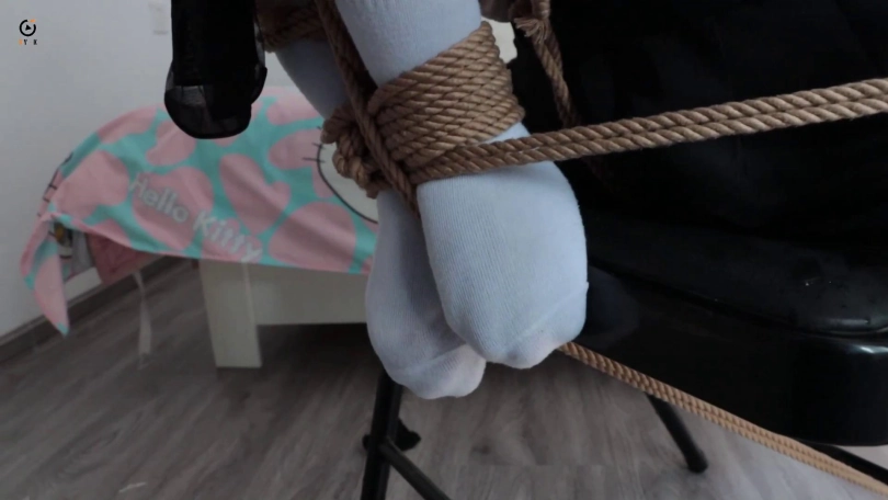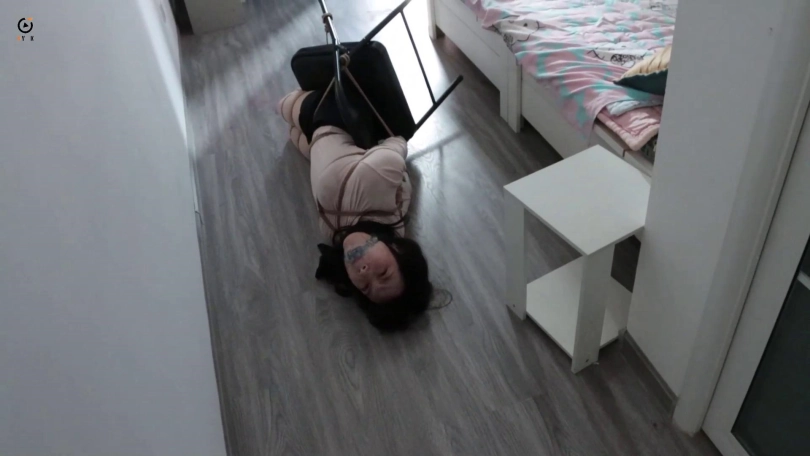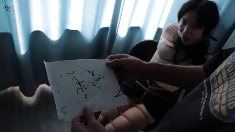 佳怡被囚禁后小七换着法折磨刁难佳怡,拷问的时候也不把嘴松开,恶趣味的让佳怡用脚夹着笔在纸上写密码,写的不好就是一顿毒打。佳怡挣扎的声音被邻居听见,邻居找上门,佳怡觉得机会来了拼命挣扎,结果邻居被小七几句话敷衍过去了,佳怡求救失败惹怒了小七,决定再把佳怡绑的严厉点。