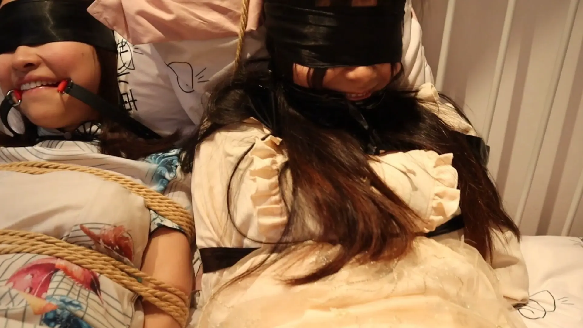 【荷仙连缚】粉与蓝洛丽塔公主的双人再现合作连缚,外向与内敛的碰撞,肉丝和白丝,旗袍和纱裙,绳子与胶带,口球与纱布,同样的敏感但性格缺迥然不同,不会停下来的男主和拼命挣扎被紧缚着崩溃的少女们的