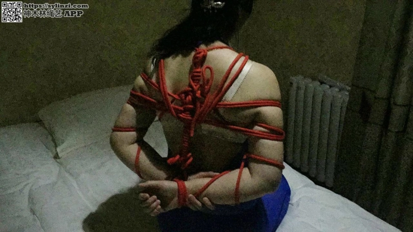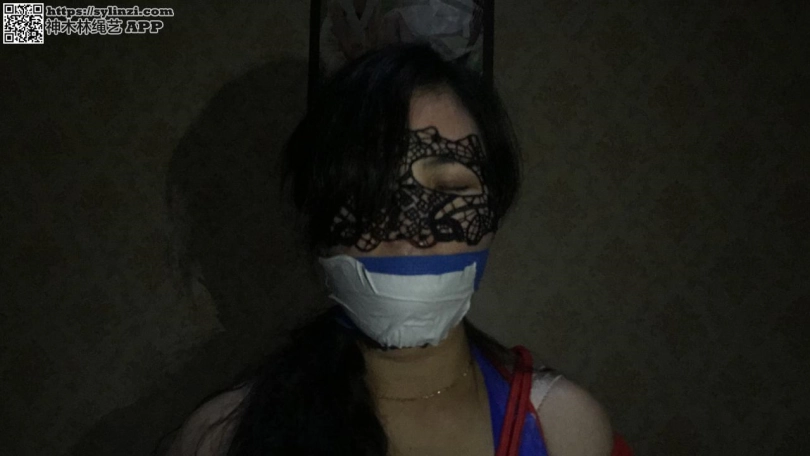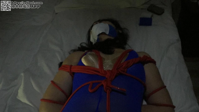 首次接受捆绑,蓝色连体裤袜,红色捆绑 丝袜塞嘴 白胶布封嘴再用蓝色绷带缠嘴等内容。