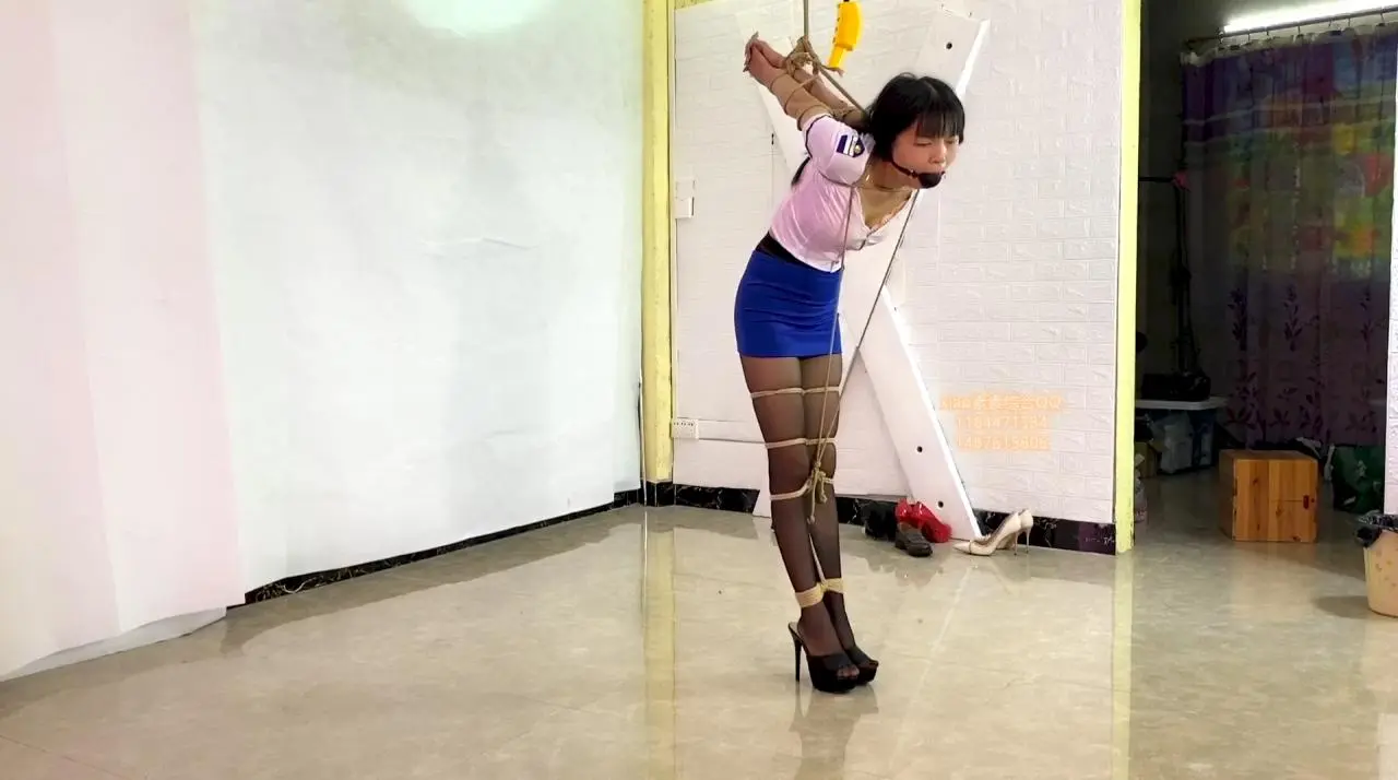 空姐黑丝素素被严厉欧式捆绑 5cm口球堵嘴 并且 大腿的绳子连着脖子再连着手