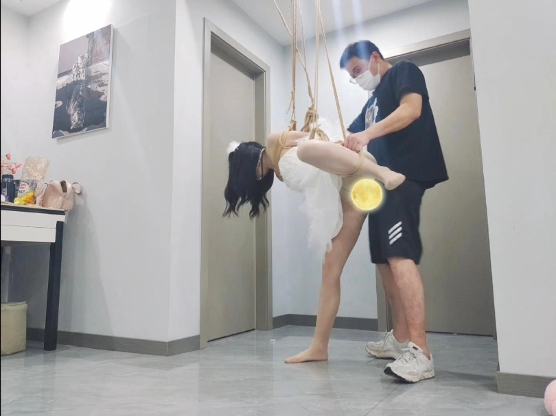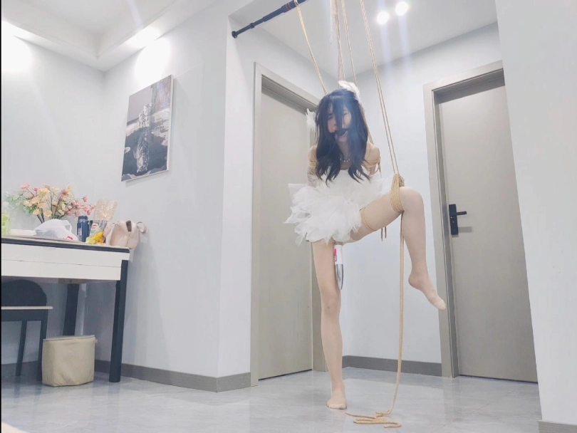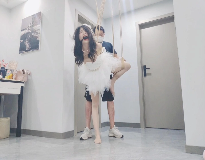 雪白的芭蕾舞裙,白丝,超大口球,空中悬吊,固定强高,没想到悬吊起来之后由于强高受不了开始不停的剧烈挣扎,完成了经典的空中芭蕾舞蹈,完美到兴奋至极,恨不得继续口舌然后吊缚后入,m被爽上天的一天,由于没有吊好,m痛苦并快乐至极的表情和声音表现除了淋漓尽致