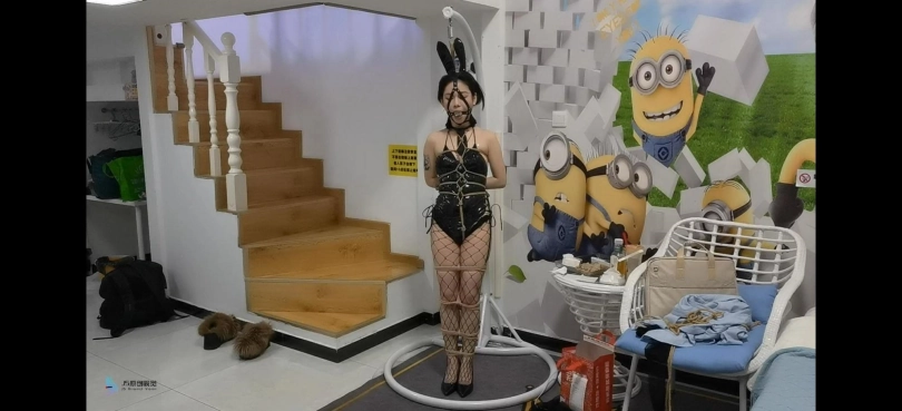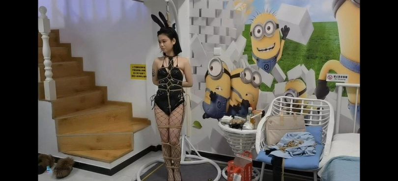 【JS】夏瑾性感兔女郎渔网袜高跟鞋站立龟甲缚多种胶带封嘴柠檬口球流口水