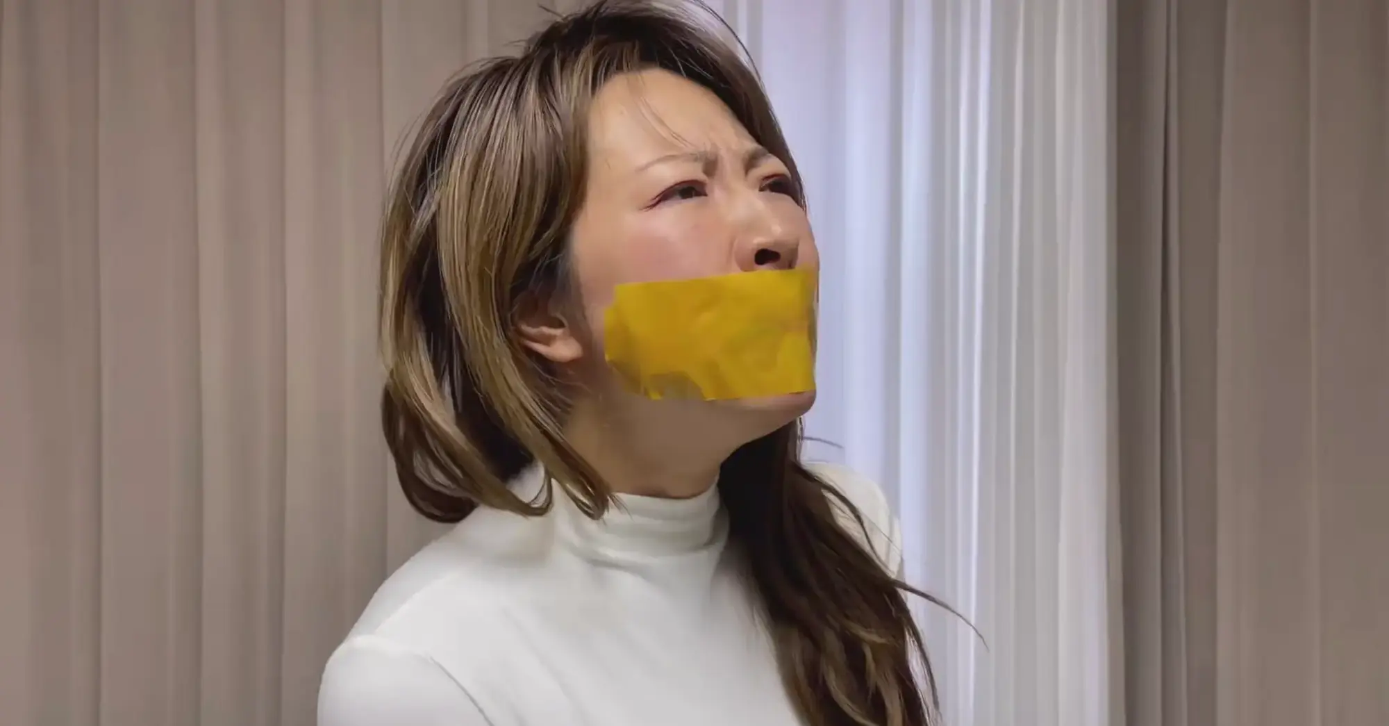 【云雀】【封嘴劫7(上)】封嘴劫再现!Zheng务人员小米经常直播宣传防绑架侵害,这一天在家中遭遇劫匪强势封嘴,黄色胶带封鼻,难以呼吸!演员极度卖力!(最后一张透明胶带封嘴)