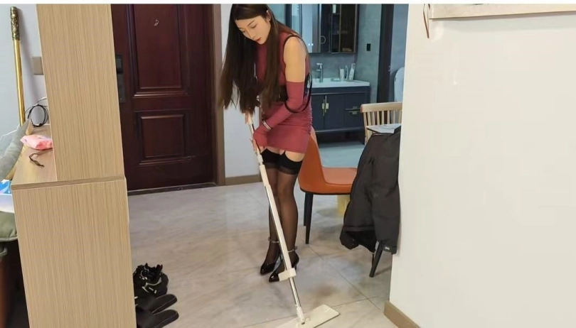 让佳佳带手铐脚铐打扫卫生,完成各项指令任务,佳佳丝袜有体香,谁要谁知道