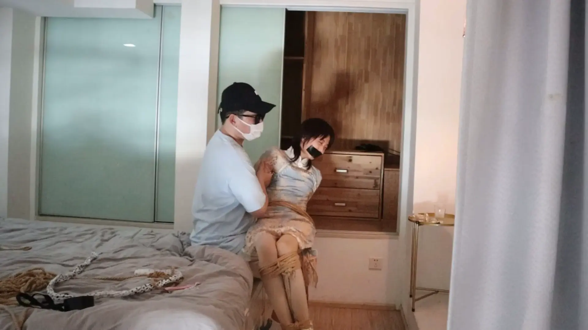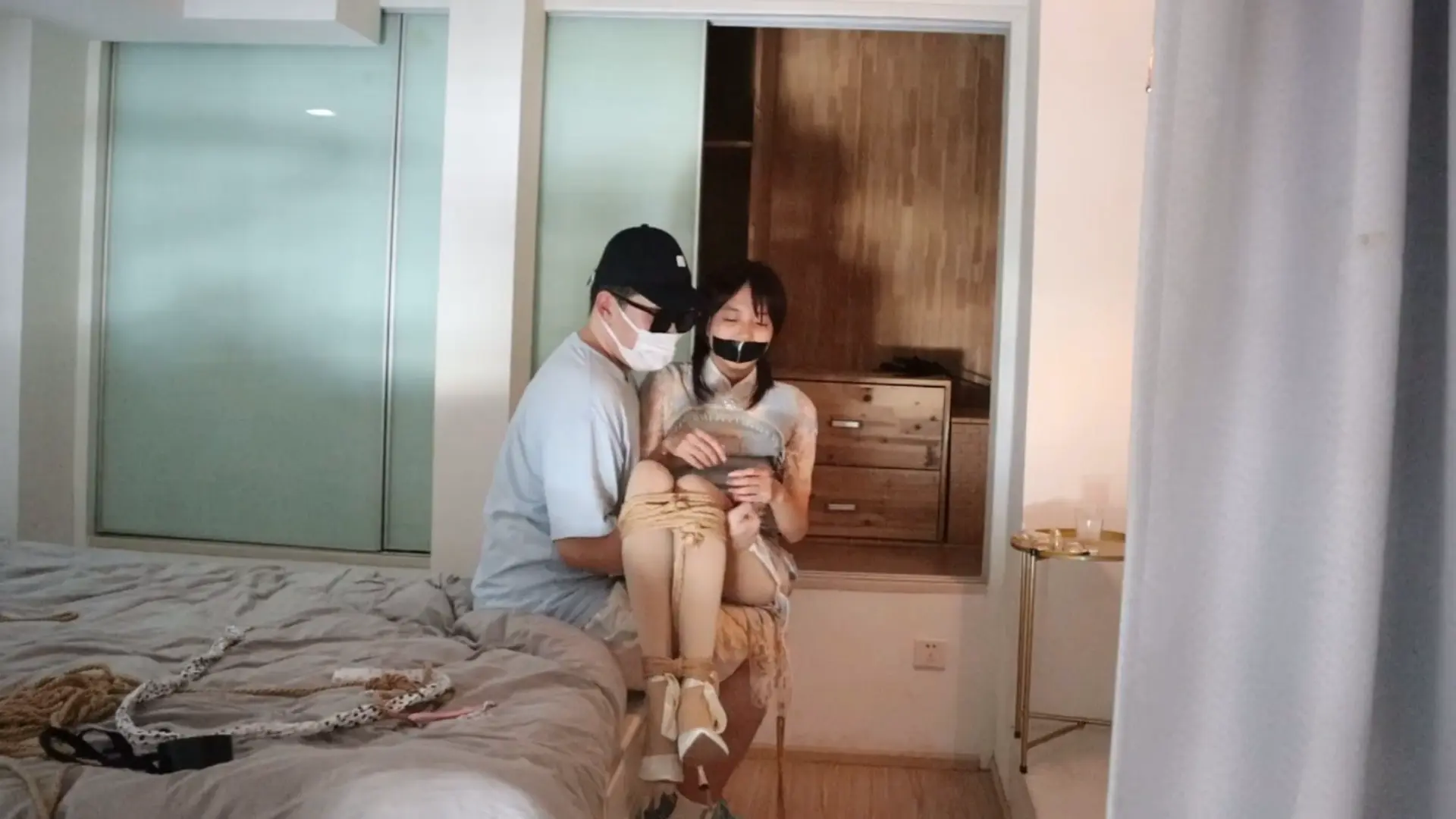 【荷仙少女】短发旗袍肉丝高跟少女小B(本本),高挑旗袍厚肉丝,绑好后抱起来放到壁橱里玩弄敏感tk部位,看痛苦短发萝莉痛苦挣扎后扔到床上继续