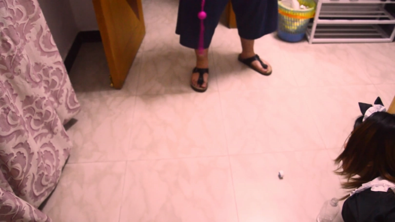 她先反手想用手打开瓶子,但自己是拘束手套,所以试了几次都没有用,于是她用丝袜脚夹起瓶子想打开瓶盖。女警丝袜脚试了好多次都打不开瓶子。