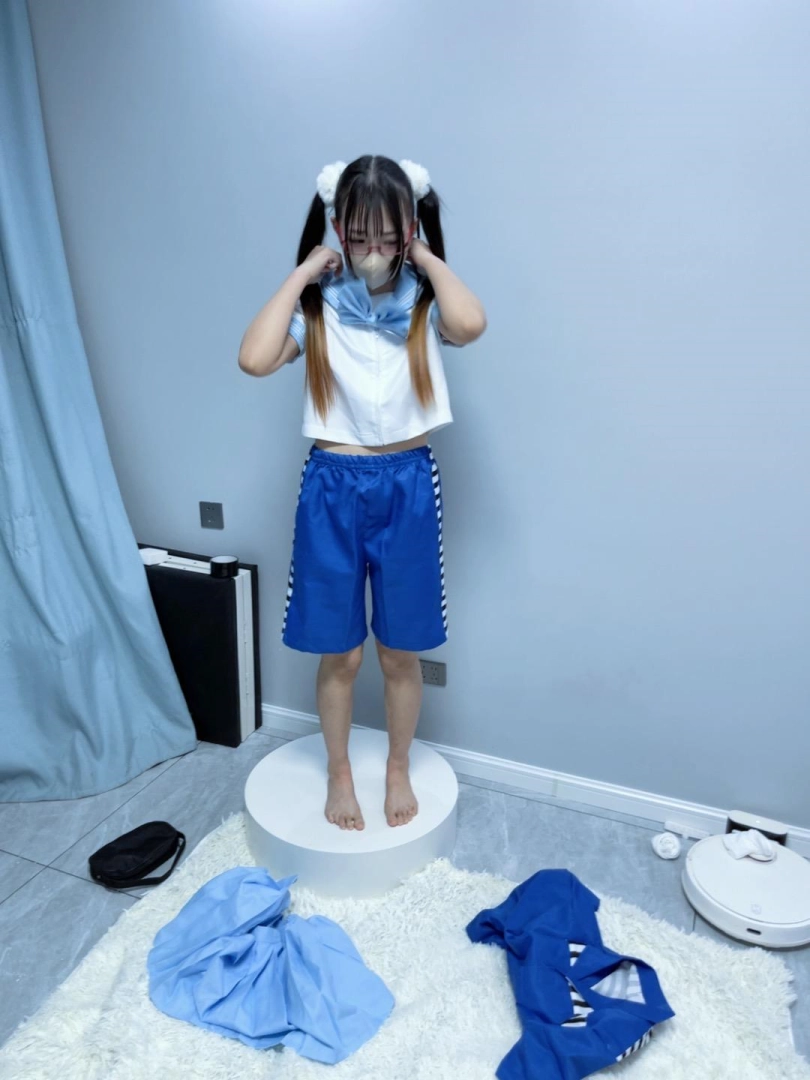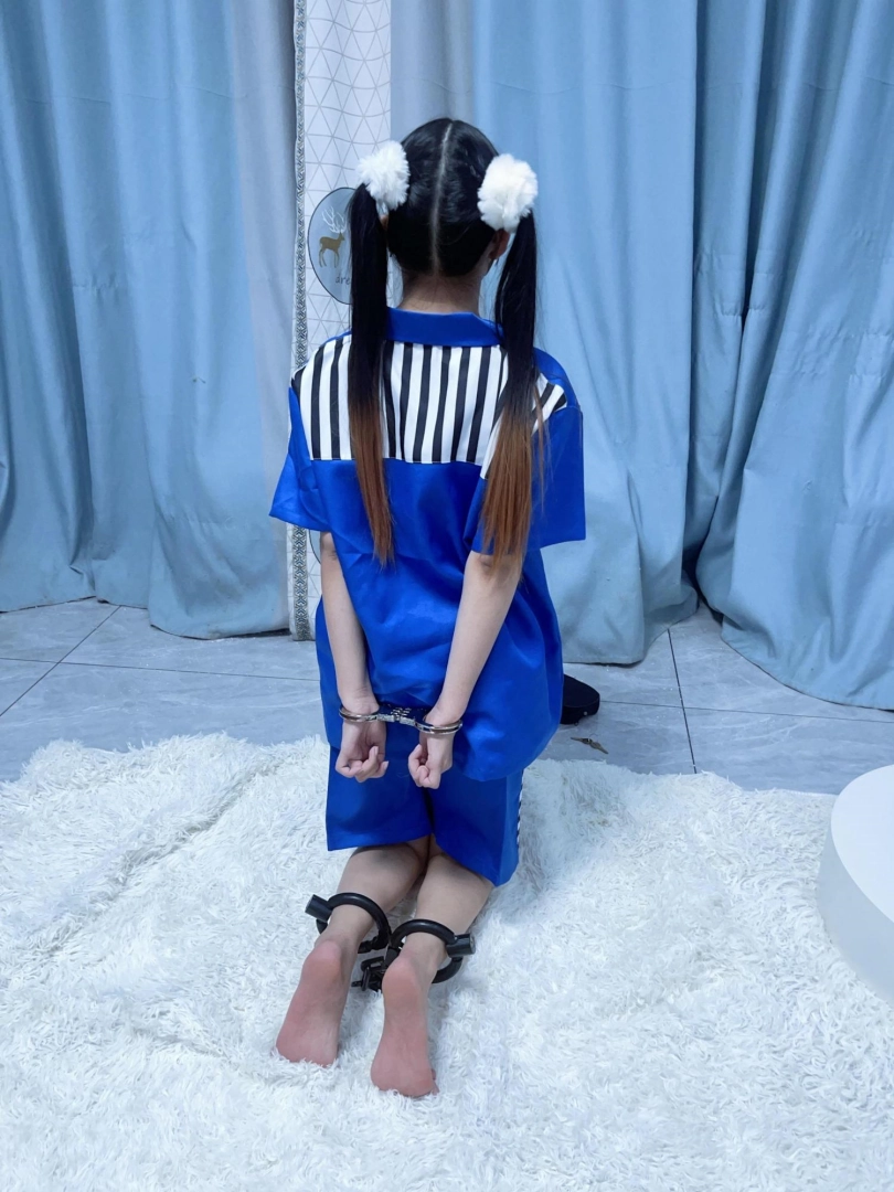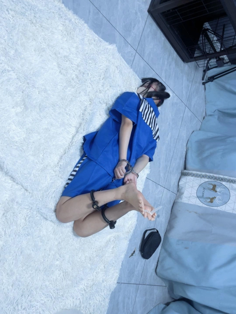 到了地方命令糖糖趴墙站好搜身,抬起两个脚掌检查摆弄一下脚趾缝,换上蓝色短袖短裤囚服。