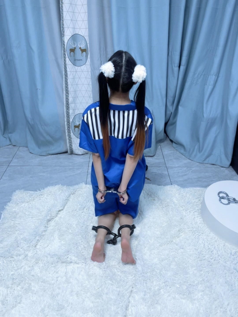 妹子是名同好,小时候就幻想着自己戴上手铐脚镣体验女囚的生活,特意跑来体验。