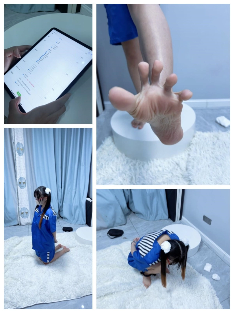 换好衣服,让糖糖跪下自己交代(拍拍脚底特写),糖糖开始不认,开始体罚蹲起和打脚心(根据妹子自己选择的强度,打的非常重,用的小红脚底都打肿了),之后受不了认罪,蹲下对着脱下的白丝指认。