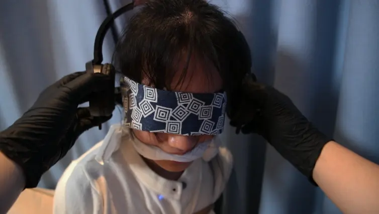 翠晓妹子被绑架后被迫带上耳机听恐怖故事,中途被迫投喂小饼干