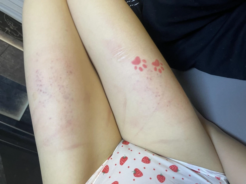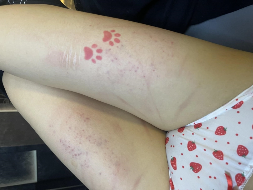 屁股都打紫了,大腿根也全是鞭痕~