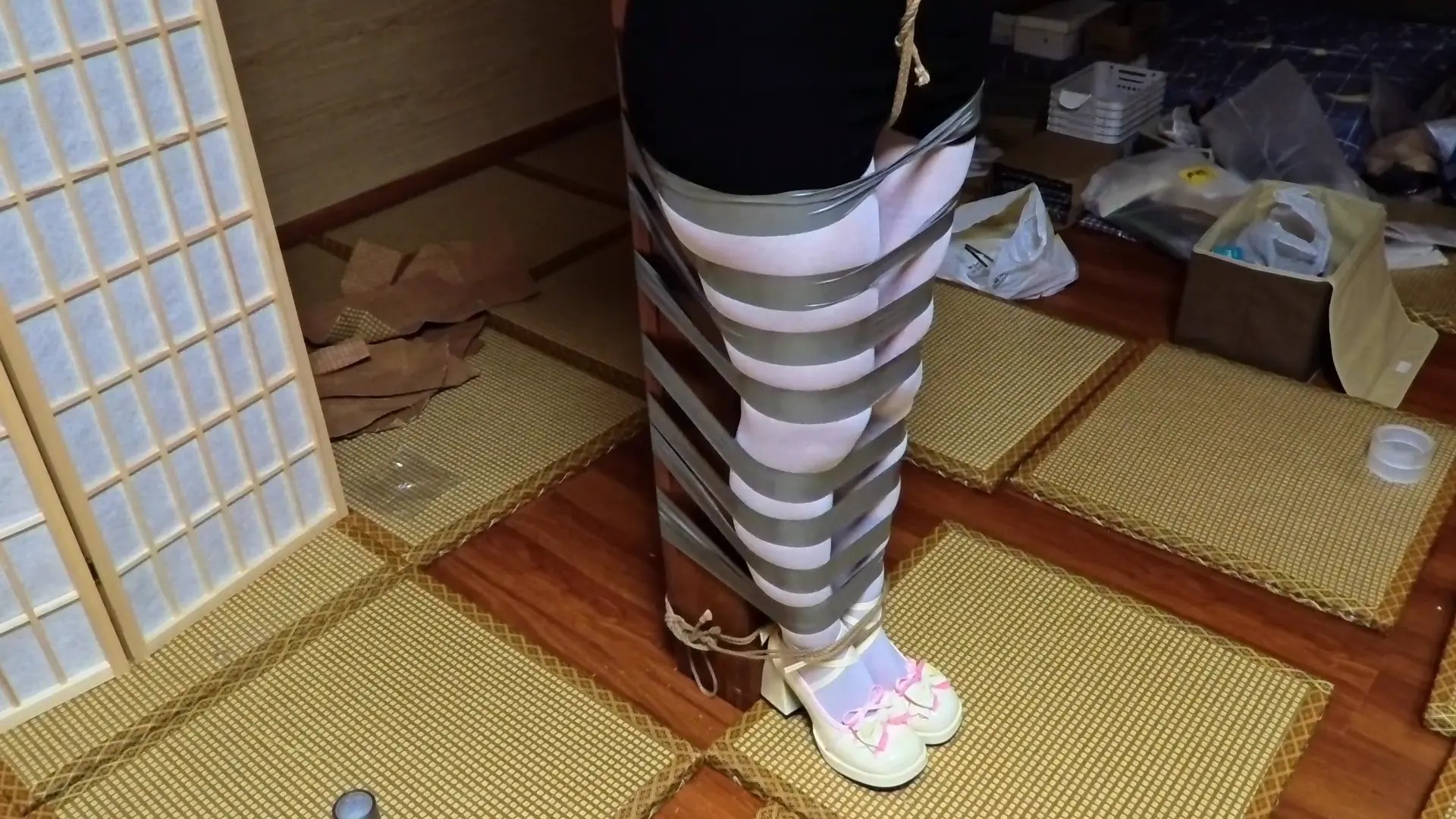 【渎竺】【川川】OL职业装,银色胶带密集缠绕柱缚 上