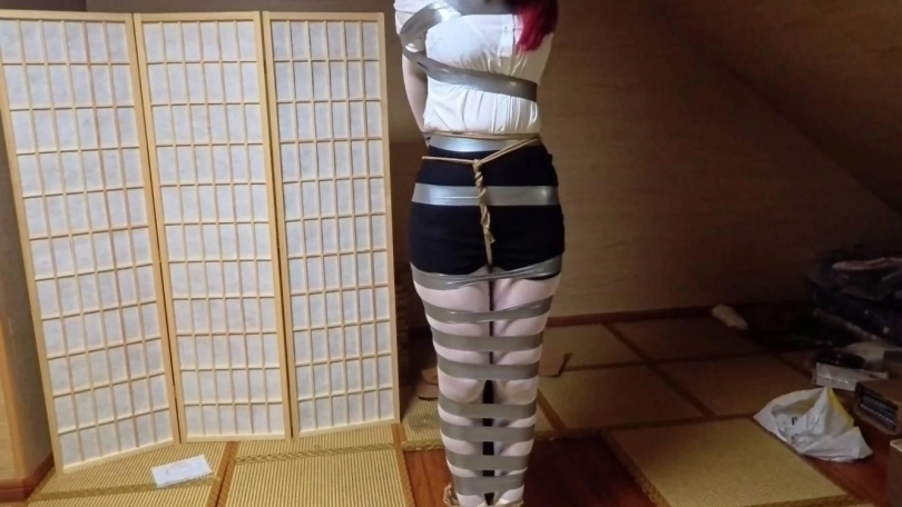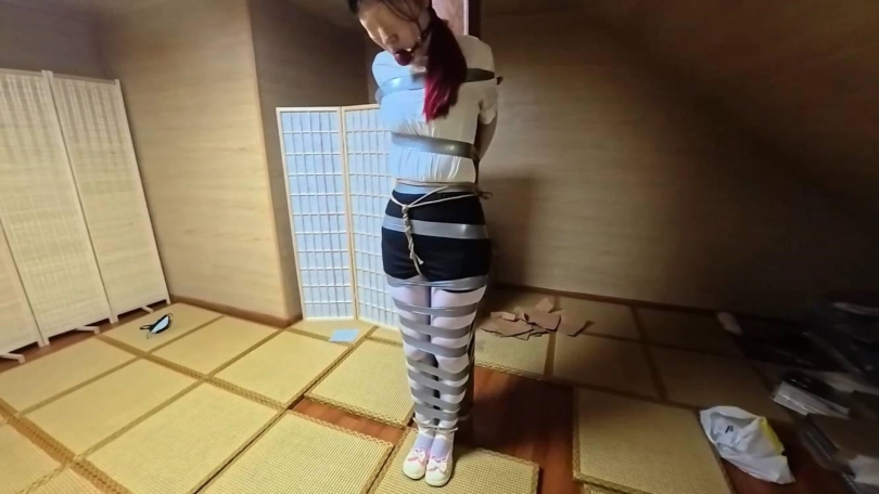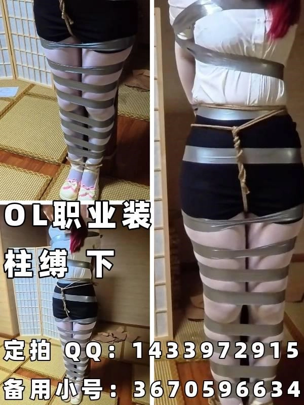 【渎竺】【川川】OL职业装,银色胶带紧密柱缚 下