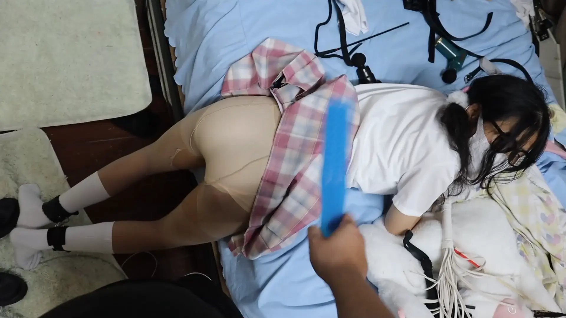 【荷仙少女】【优异眼镜少女兼职的噩梦】3 虞琳经过电击惩罚后晕过去后,叔叔把虞琳带上手铐脚铐爬在一边,拿出了各种藤条鞭和滴蜡烛,边虐打边命令,为了离开虞琳只能边大哭感恩说到谢谢叔叔打我!