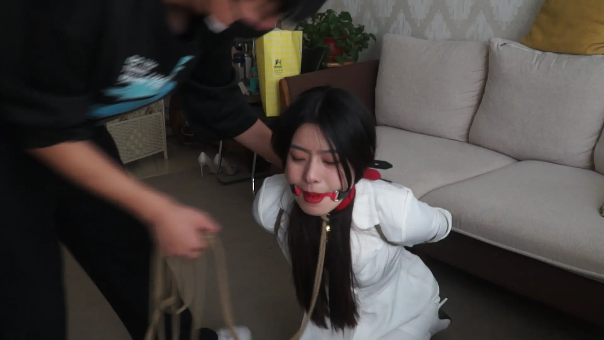 【美束映画】希希白衣白靴肉丝捆绑