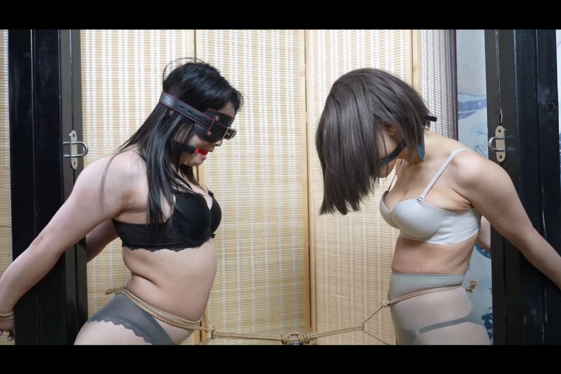 接着两女被捆在两边住在上,股绳被系在一起后吊住一个装满水的水瓶,再加上震动。