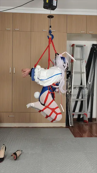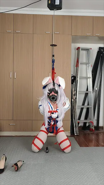 复刻一下之前的一期,折腿后手直臂悬吊自缚,服装是之前有人留言的拉菲II兔女郎~因为衣服袖子的关系,这次直臂没有用手肘绳套,所以后半段就切换成了后高手(