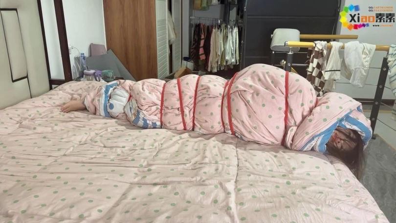 李曼是个独居的女孩,这一天回到家里,刚打开家门就被一直跟踪暗恋他的邻居迷晕,这厮为了得到李曼,居然给她喝下了“听话水”,被药物控制的李曼乖乖的被闯入的家伙摆布,被用绳子绑起来还不够,又被棉被包裹了起来,像一个可爱的蚕宝宝。