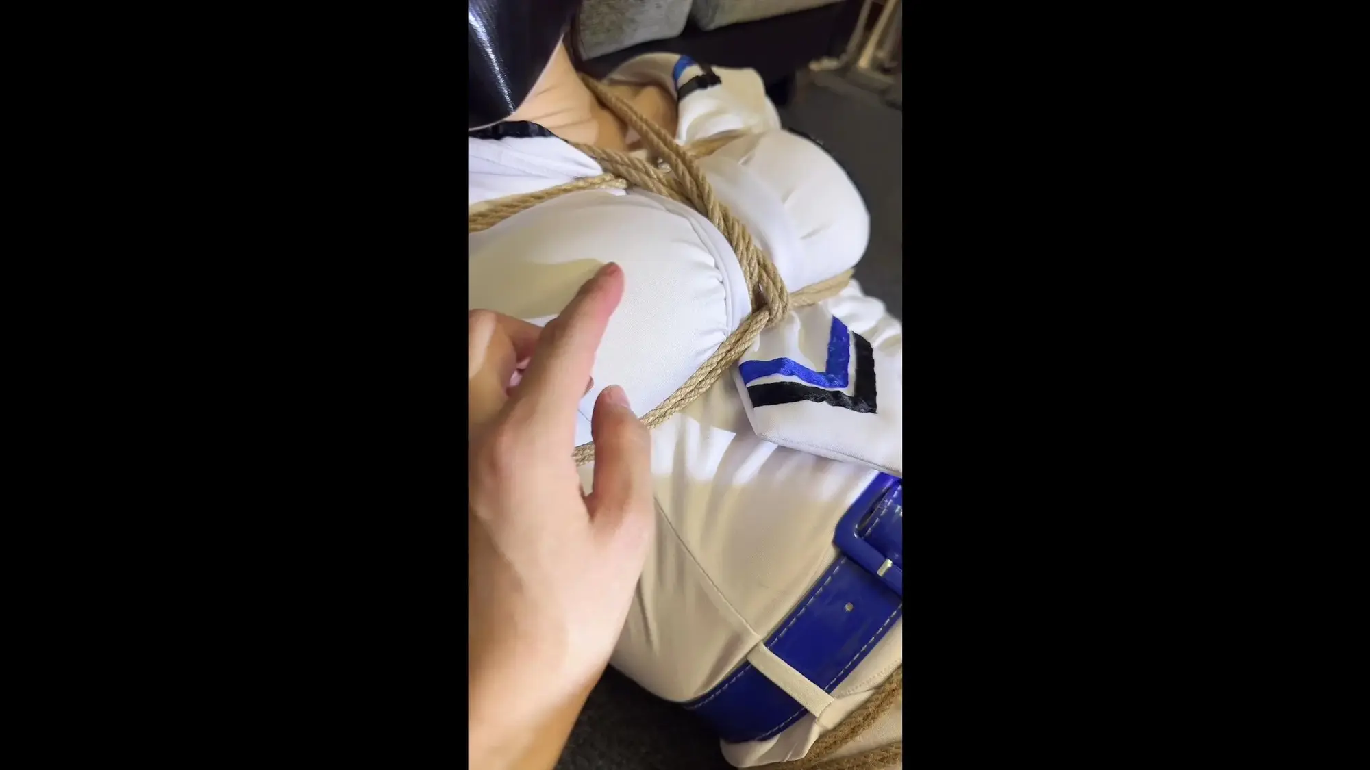 【逍遥】《主播也疯狂·女王小朵受难记-油亮丝长靴黑皮衣加水兵服银色高跟》