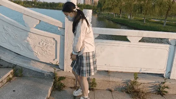 【苏苏】JK双马尾萝莉手铐白天户外脚镣公园探险遭遇大量行人
