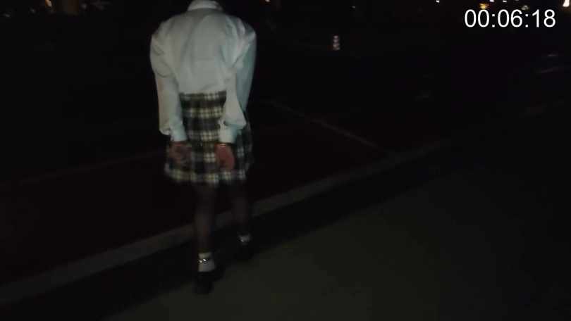 大一新生苏苏第一次体验戴手铐脚镣出门寻找钥匙?,自己给自己锁好后小心翼翼地下楼,晚上刚好起风了,开始下雨,在蒙蒙雨夜中,苏苏鼓起勇气出小区去找钥匙,踉踉跄跄拿到钥匙后,笨笨的苏苏自己尝试了半天没能打开手铐,还想要寻求帮助,打开手铐后开始上楼,走到一半楼下传来了人的脚步声,苏苏吓坏了,恨不得跑着逃离,但由于脚镣限制走不快,好在楼下的人并没有走上来,虚惊了一场,最后苏苏打开了脚镣回家~