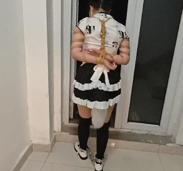 傍晚时分,苏苏穿着中华小厨娘女仆装,扎着可爱的丸子头塞着尾巴,被五花大绑的结结实实,小小的黑丝脚上戴者脚镣,乘坐随时可能来人的电梯来到小区楼下,与小区保安隔岸相望。手臂上的肉在绳子的映衬下一览无余,苏苏戴着脚镣走到了一片足球场,兴致盎然的进行了一场足球比赛,几次险些摔倒被足球单杀,踢完球后小家伙被牵着来到一棵树丛下,将她拴好后塞上跳蛋,在她痛苦的娇哼中渐渐远离她,随时可能被发现的风险与跳蛋的双重折磨让苏苏不断呻吟,被紧紧捆着的苏苏十分无助,玩弄了一段时间后苏苏已经有气无力了,前方等待着她的又是什么呢......