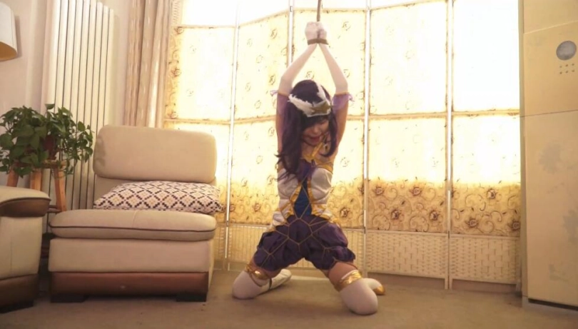 天使詹娜被劫匪劫持 被悬吊起来 龟甲紧缚 詹娜无奈的挣扎 kb行走在无人的空间 口球 口水