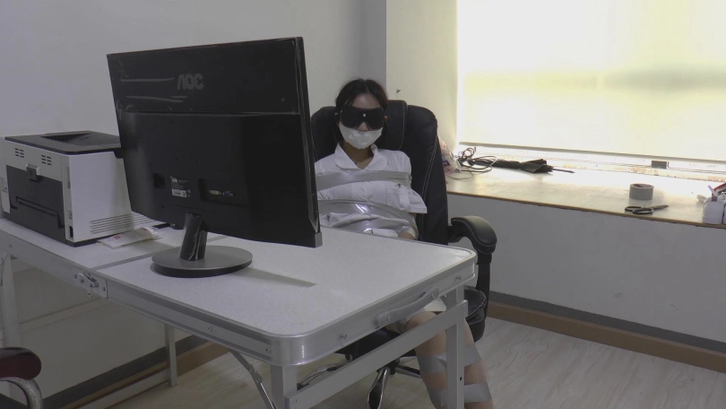 先是梁雨让李晗低下头,扯掉了李晗嘴上的胶带,李晗呼呼呼的喘着粗气,一方用力扯断自己的胶带,果然绑住手的