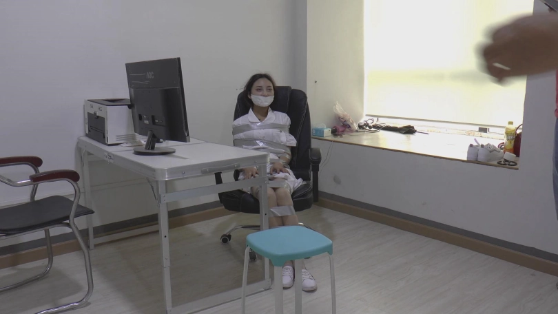 梁医生打开屋门,便看见被捆绑的结结实实的李晗,吓了一条,以为诊所遭了劫。赶紧帮李晗解起胶带。