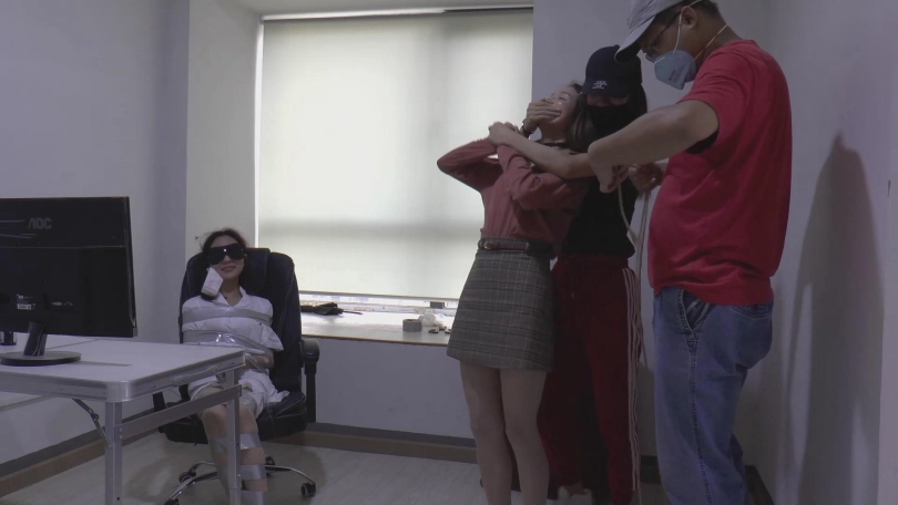 韩娜,将梁雨和李晗绑好放在地上。自己又去翻箱倒柜,找钱财去了。梁雨听到,感觉有希望,于是帮助李晗松绑解