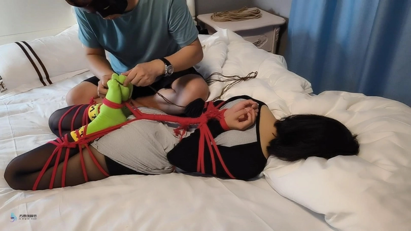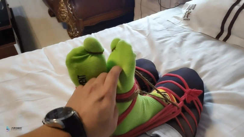 【JS】【激辣】红绳后手观音驷马捆绑棉袜丝袜套头胶带封嘴挠痒绑脚趾
